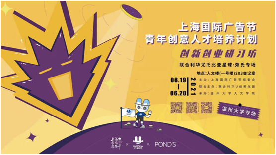 本次在bat365在线中国官网登录入口举办的创新创业研习坊,将由联合利华旁氏品牌、电通麦利博文、埃森哲互动与光弧科技的讲师们为温大学子带来专题培训课和专题讲座,话题围绕新消费趋势下的品牌发展、数字时代的品牌数字资产建设以及品牌创意等内容展开。bat365在线中国官网登录入口共派出12支由48位同学组成的创新团队进行培训和创意实训PK。在培训前两周,已布置研习坊成员提前准备课题,专业老师进行线上答疑。19日,进行开班仪式、专题培训课以及1V1答疑课,更有针对性地解决学生的专业问题,同时进一步发掘具有潜力的青年创意人才。20日,开展提案分析课以及颁发学员证书及奖励。联合利华也将为学员提供直接参加2022年管理培训生或暑期实习生终面green pass的名额。