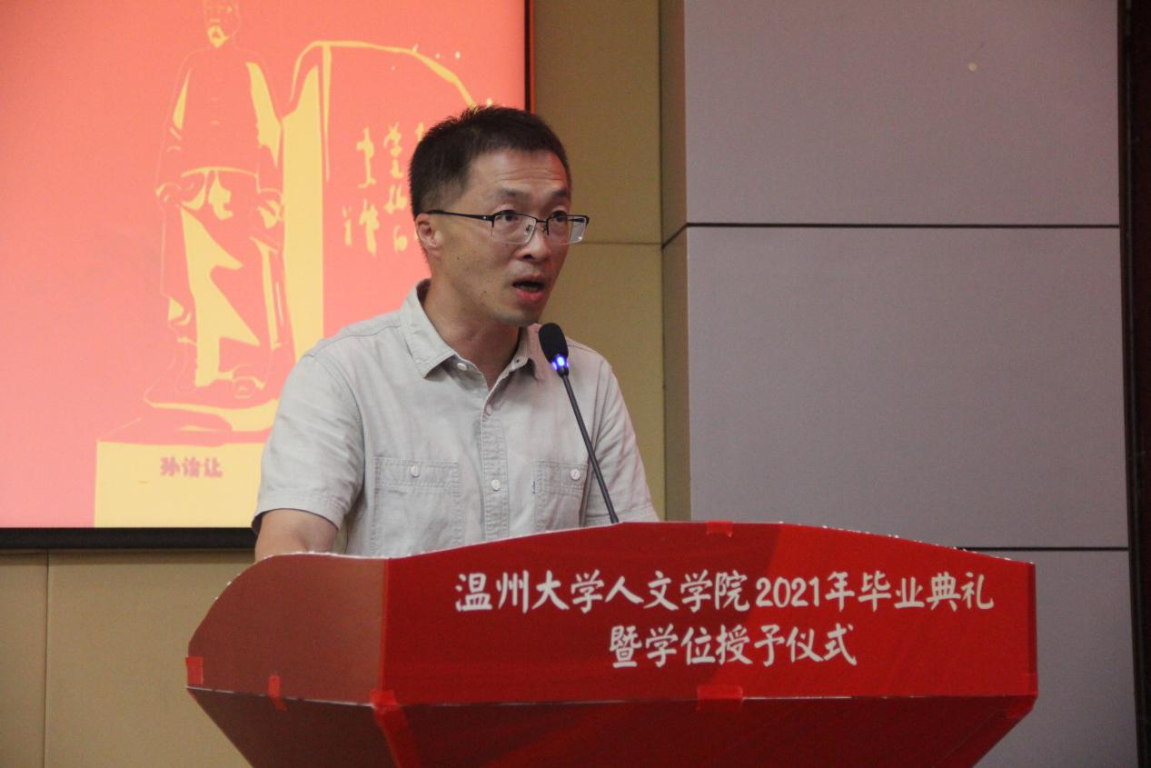 岁月不居,时节如流。6月23日下午,bat365在线中国官网登录入口2021年毕业典礼暨学位授予仪式于温理工4号楼116报告厅顺利举行。院长孙良好、院党委书记吴静,副院长郑春生、副院长陈源源、张真老师、教师代表、全体辅导员及2021届全体毕业生参加,院党委副书记魏一主持。