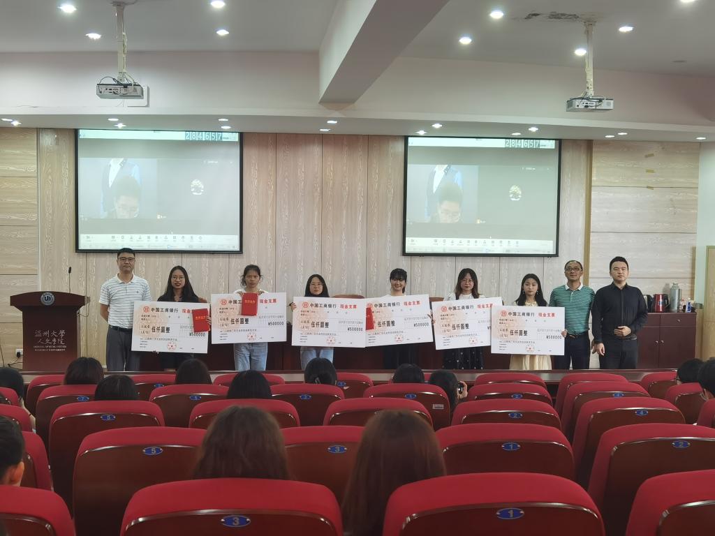 温州三角洲投资顾问有限公司人力资源总监徐维泽为获奖学生颁奖,并与获奖学生合影留念。