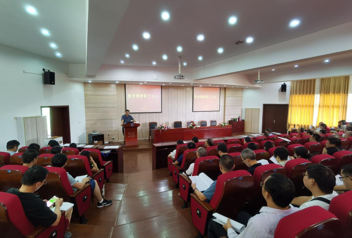 9月8日下午,bat365官网新学期第一次教职工大会暨理论学习会在人文楼203报告厅召开,学院领导班子成员和全体教职工参加会议,会议由孙良好院长主持。