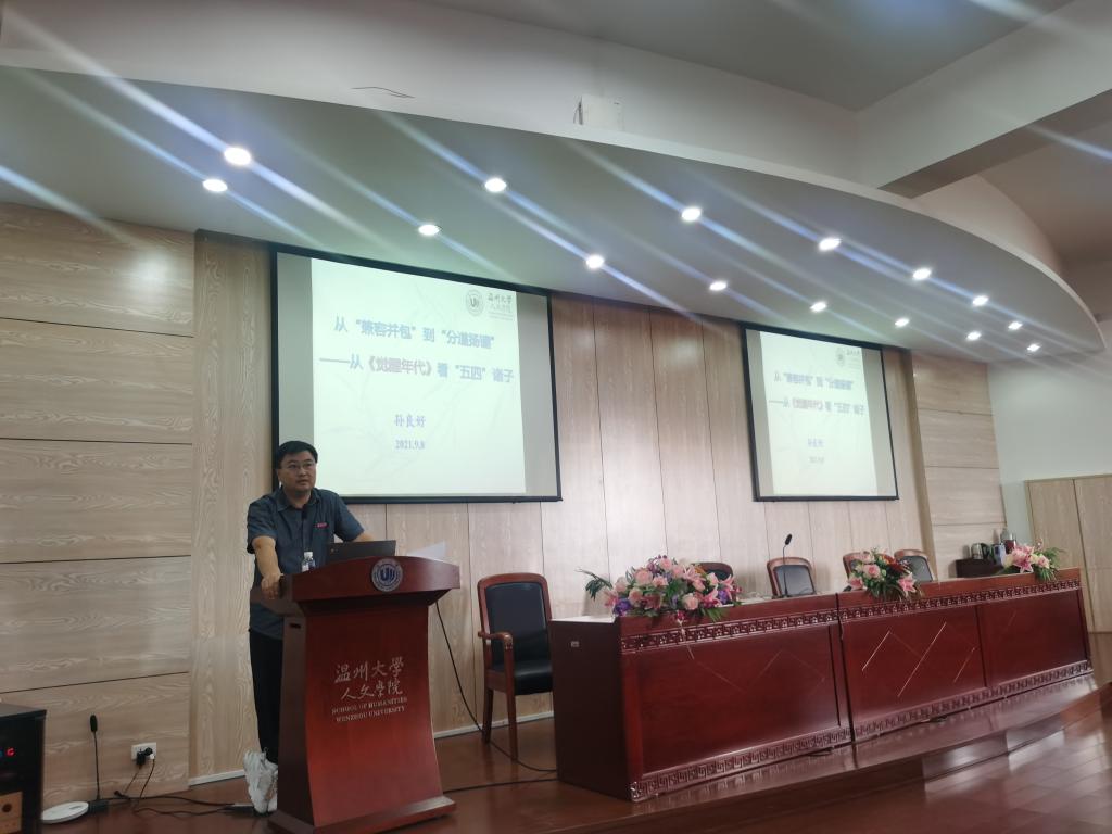 孙院长首先向大家介绍了新入职的7位教师,对他们加入人文大家庭表示热烈欢迎,同时勉励他们融入团队,发挥特长,在教学和科研上脚踏实地出成绩。之后孙院长结合bat365在线中国官网登录入口《教师政治理论学习资料汇编》,强调全院教师要在继承发扬党建精神、推进文化温州建设、学习解读新教育法及教师职业行为准则等方面加强理论学习。孙院长随后以热播剧《觉醒年代》为切入点,作了题为从“兼容并包”到“分道扬镳” ——从《觉醒年代》看“五四”诸子的党建学习分享会,通过对蔡元培、陈独秀、胡适、李大钊、鲁迅等先进分子和热血青年的人物剖析,展现了从新文化运动到中国共产党建立的波澜壮阔的历史画卷。