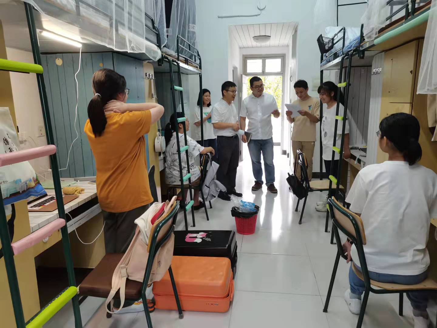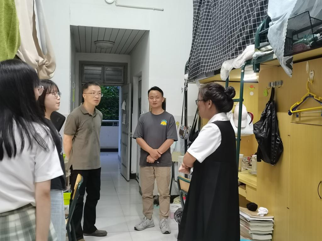 院党委副书记魏一细心询问了入学后的住宿、就餐和生活用品等生活问题,提醒学生注意寝室安全问题,还特别叮嘱新生们要注意身心健康,遇到困难及时和老师反映,共同营造良好的宿舍氛围。副院长陈源源也提醒新生们要合理规划时间,多读书、多思考,争做时代新学霸。