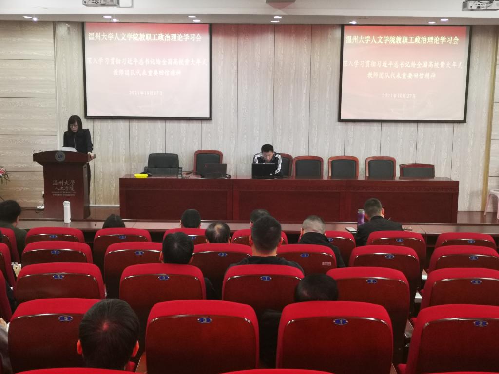 为认真贯彻落实习近平总书记给全国高校黄大年式教师团队代表重要回信精神,深入学习弘扬黄大年同志的爱国情怀和敬业精神,bat365官网于10月27日下午在203报告厅召开全院教职工政治理论专题学习会。学院全体教职工参加本次会议,会议由学院党委书记吴静主持。