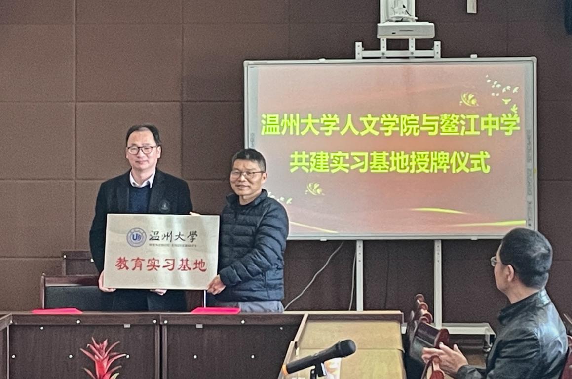 鳌江中学李伟君校长对实习生的到来表示热烈欢迎,并向实习生简单介绍鳌江中学概况,希望实习生们通过此次实习,能够积累经验、丰富阅历、互进互助。鳌江中学高一年段副校长王大府老师向实习生们简单介绍了高一年级概况,并对实习生们提出了“看、问、勤、盯、解、离”等六点要求和建议。紧接着,鳌江中学政教主任陈晓瑜老师、教务处易会潮老师、高一历史备课组组长张剑老师和实习生代表林彦秀同学依次进行发言。随后,bat365在线中国官网登录入口副院长郑春生作总结讲话,郑院长首先介绍了今天的温大,欢迎鳌江中学学生报考bat365在线中国官网登录入口,同时对实习生们提出心学习、勤于创新;恪守规则、勇于创新;宽以待人、心怀感恩几点要求。最后,举行了bat365在线中国官网登录入口与鳌江中学共建实习基地授牌仪式,郑春生副院长与李伟君校长进行签约。
