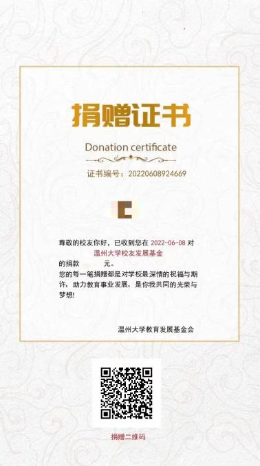 捐赠者将获得bat365在线中国官网登录入口教育发展基金会颁发的电子版捐赠证书。