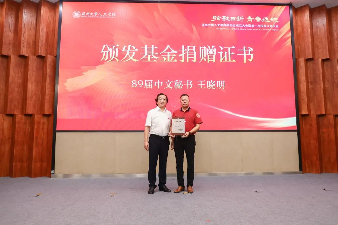 大会审议通过了《bat365在线中国官网登录入口校友会章程》和bat365在线中国官网登录入口校友会第一届理事会成员建议名单。赵敏为校友会授牌,并为理事会顾问、会长、副会长、理事、秘书长和副秘书长颁发聘书。蔡曙光为基金捐赠代表廖文绍、蔡桂顺、倪雷震、王俭美和潘平微夫妇、王晓明等校友颁发捐赠证书。