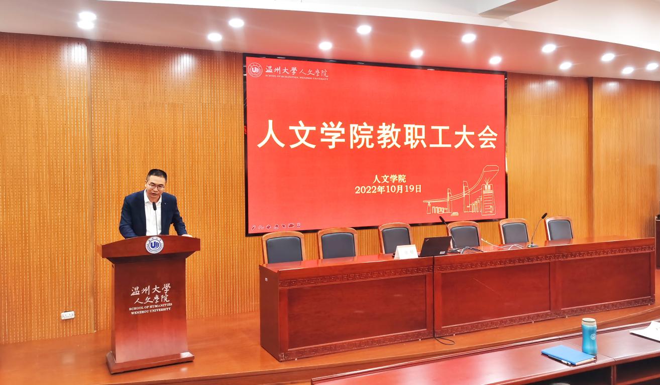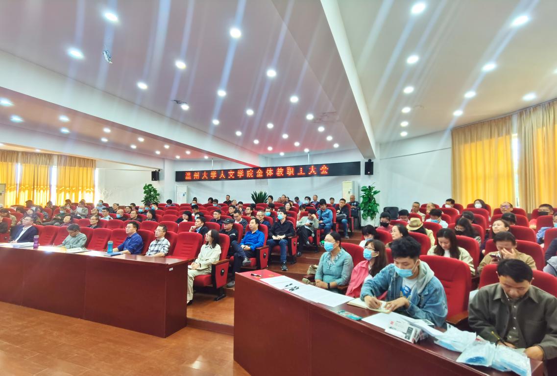 10月19日下午,bat365官网在人文楼203报告厅召开全体教工大会,学院领导班子和全体教职工参加会议,会议由学院党委书记江秀景主持。