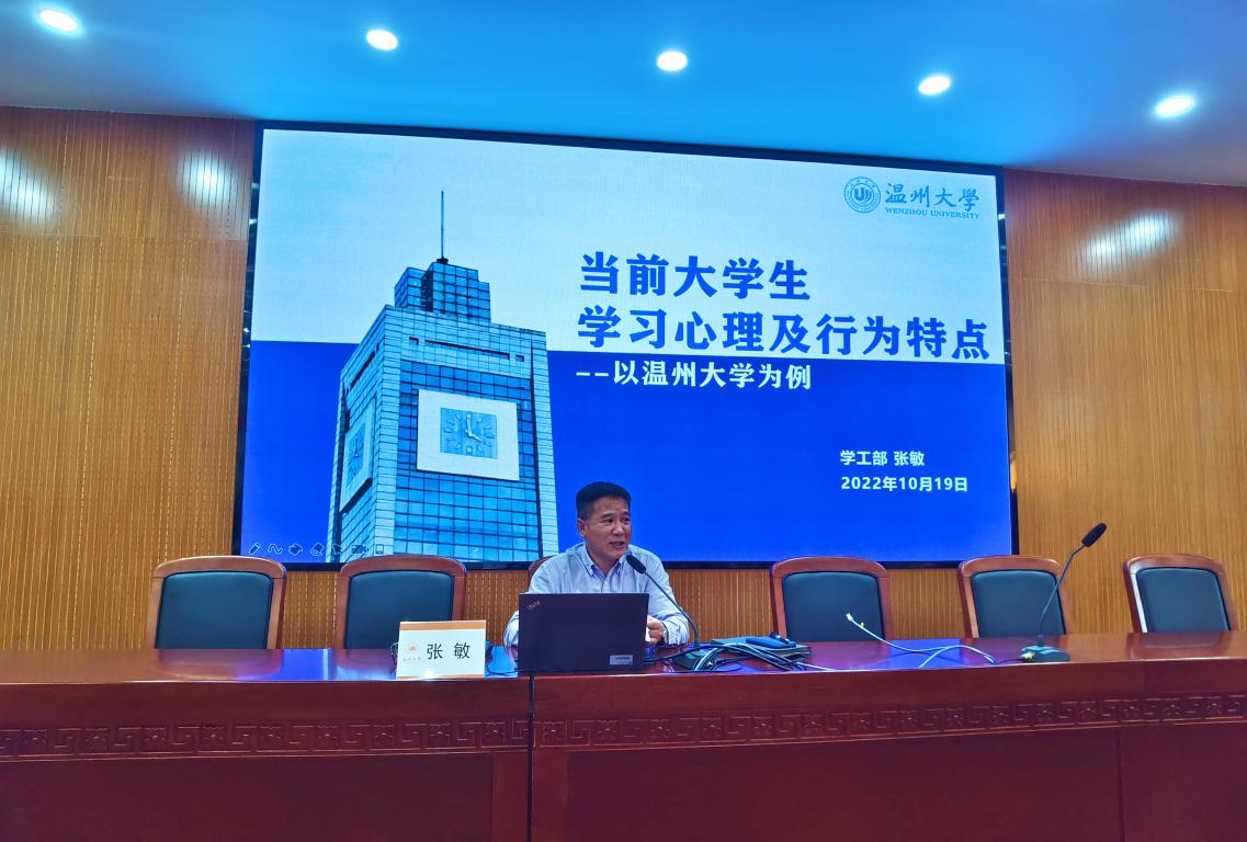 为提高学生的综合素质,培养新时代的人才,会议邀请到了校学工部张敏部长作“当代大学生学习心理及行为特点”专题讲座。张敏部长从学校基本情况、特殊学生、生涯认知、校园关注四方面介绍了学生的心理及行为特点,并以案为鉴、以案警示,结合数据和实际情况,提醒全体老师不仅要关心学生的学习成绩,更要关心学生的心理成长,尤其要加强与学习基础薄弱,心理脆弱,经济困难等特殊学生的沟通。学校力争在聚焦学业与学生发展,致力于独立人格的公民教育,完善学生评价机制的工作上再接再厉,取得突破。