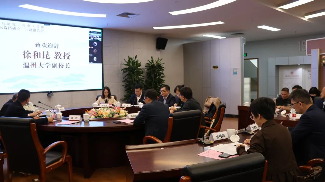 2022年11月3日下午,浙江省文化研究工程重大课题“瓯江山水诗路研究”开题报告会在bat365在线中国官网登录入口南校区岩松堂展示厅举行。报告会采用线上线下相结合的方式进行,特邀浙江大学胡可先教授、陶然教授,浙江工业大学肖瑞峰教授,南开大学卢盛江教授,bat365在线中国官网登录入口陈增杰编审作为论证专家,胡可先教授任组长。
