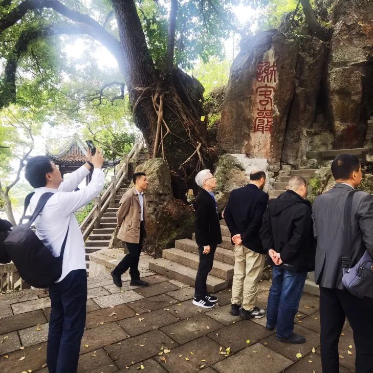 4日下午,来温参加“谢灵运与中国山水诗” 主旨论坛暨学术研讨会的20余位专家学者,沿着“东山书院—积谷山摩崖题刻—池上楼—江心屿”的游览路线,亲身感受谢灵运诗中的诗意与诗情。