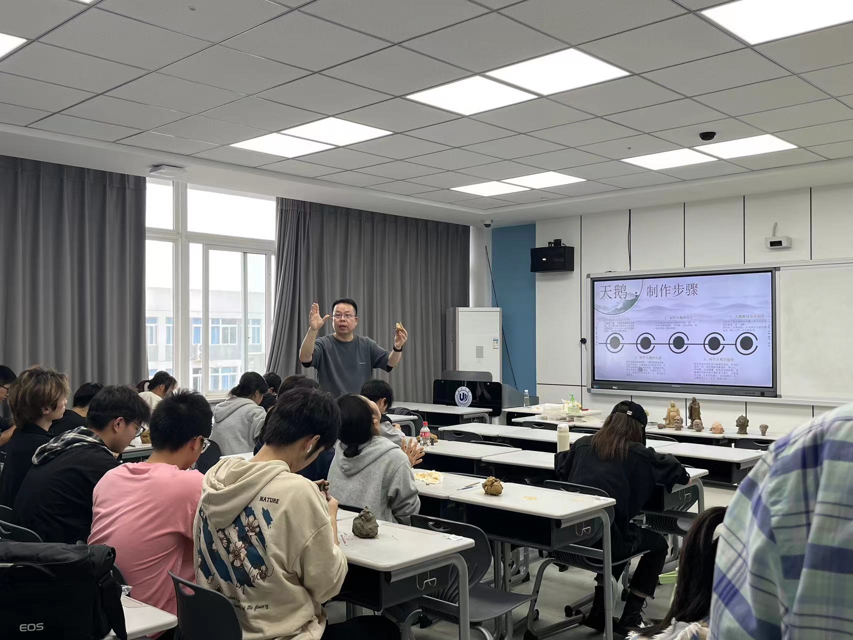随后,叶老师以“天鹅”为主题,向同学们介绍和演示了泥塑的制作工艺。“天鹅身体要捏成前宽后窄的模样,天鹅翅膀要捏的中间厚、两边薄,这样捏出来的天鹅才更加生动形象......”每一道制作工序都有它的讲究,看似简单的揉捏,实则很考究手工艺人对力道以及发力点的把握。