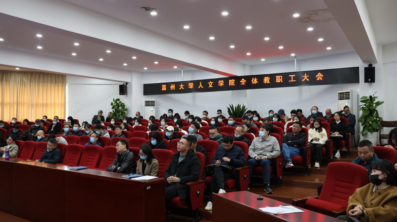 杨林书强调,要认真贯彻落实党的二十大精神,奋力推动学院高质量发展。要把学习贯彻党的二十大精神作为当前以及今后一段时间的首要政治任务,将二十大精神中蕴含的思想伟力融入到日常工作,体现在办学治院的方方面面。一是要加强党的领导,落实党的教育方针。规范执行党委会、党政联席会议事规则,坚决守牢意识形态阵地,切实深化“清廉学院”“清廉系室”“清廉个人”建设。二是要锚定申博目标,加强学科建设。增强文化自信、历史自信和制度自信,逐步扩大在中国特色哲学社会科学学科体系、学术体系、话语体系中的影响力,为传播和弘扬中华优秀文化发挥更大作用。三是要加强师德师风建设,做学生的“大先生”。坚持“四有”好老师标准,秉持“为党育人、为国育才”初心,做到学高为师、身正为范,引导学生、关爱学生、帮助学生,努力成为学生成长成才的人生导师和健康生活的知心朋友。四是要加强学生成才教育,做新时代好青年。着力推进三全育人,加强学生思想政治教育,引导青年学生树立远大理想、立足脚踏实地,坚定不移听党话、跟党走,为培养堪当民族复兴大任的时代新人而不懈努力!