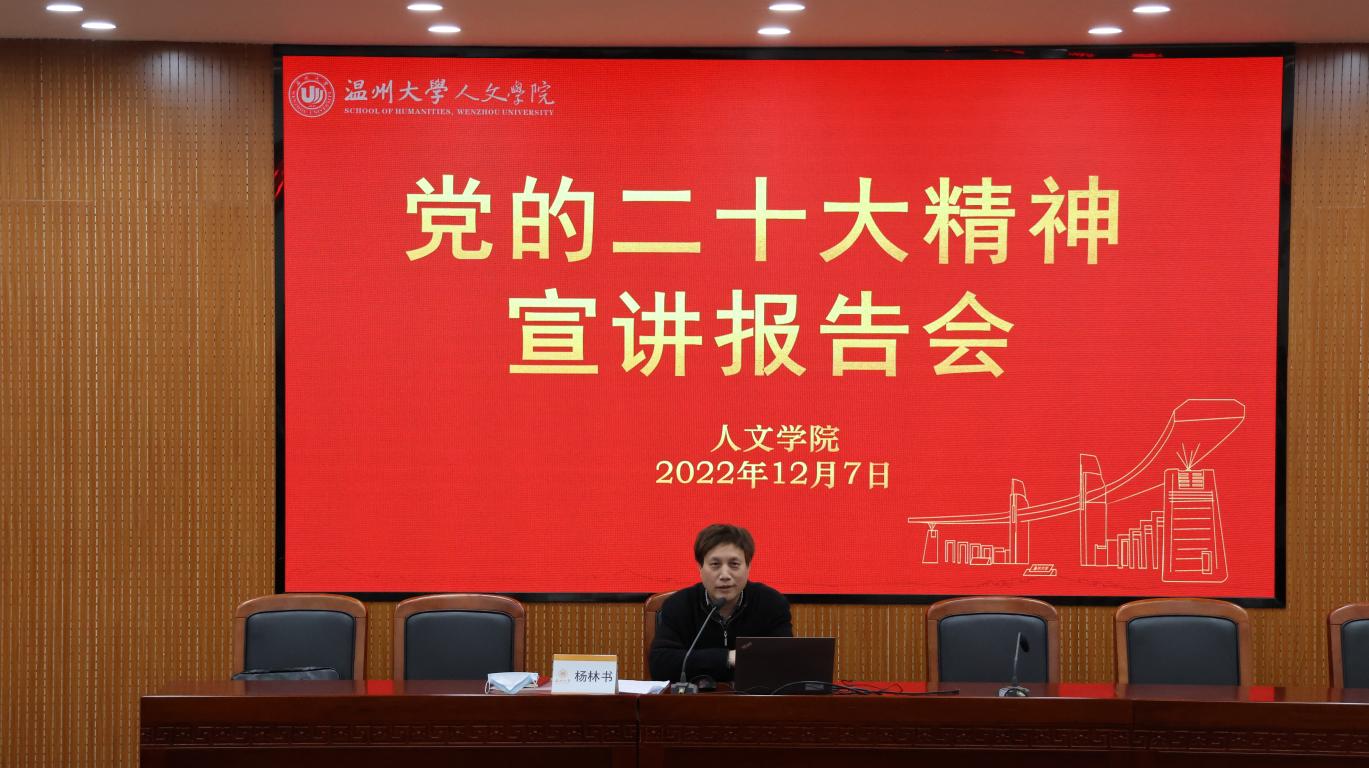 为深入学习贯彻党的二十大精神,12月7日下午,bat365官网召开党的二十大精神宣讲报告会。校党委委员、纪委书记杨林书为全院教职工和学生党员代表作党的二十大精神专题宣讲,院党委书记江秀景主持。