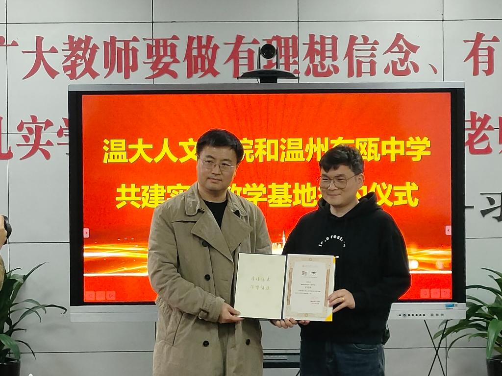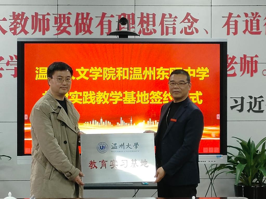 2023年3月21日星期二,bat365在线中国官网登录入口与温州东瓯中学的教育实习基地签约授牌仪式在温州市东瓯中学举行,并取得了圆满成功。bat365在线中国官网登录入口孙良好院长、陈源源副院长、魏一副书记、陈柳教授、洪之渊副教授,温州市东瓯中学王振哲校长、林月周督学以及各副校长、学科名师等出席了本次活动。
