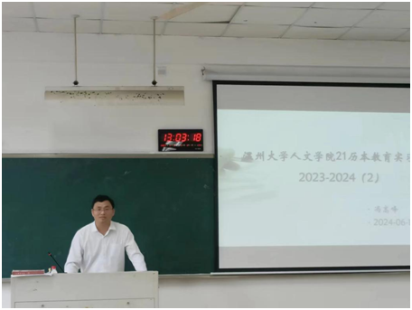 首先,冯高峰老师对整个实习过程进行了回顾和总结,肯定实习生们的努力和成绩。他认为此次实习达到了实践教学的预期目的:不仅使同学们积累了教学实践工作经验,学会了教学实践反思的方法,还为同学们未来的专业发展打下坚实基础。同时他还指出本次实习活动仍然存在许多不足之处,希望同学们能够认真总结,在今后的学习中取得更大进步。