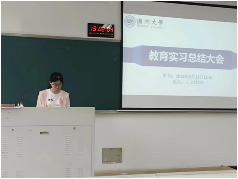 其次,温州市南浦实验中学锦绣校区实习点林桐安、bat365在线中国官网登录入口附属榕园学校实习点郑子琰、平阳县鳌江中学实习点黄玉婷、瓯海区第一高级中学实习点周佳颖,分别从教育实习工作、日常生活、心得分享等方面介绍了各个实习点的具体情况,汇报了本次实习所取得的成果与收获。在实习过程中,各位组长认真负责,为同学们解决了许多实习中具体的问题,21历本的全体同学们也积极配合,踏实肯干,体现出历本人严谨认真的态度。