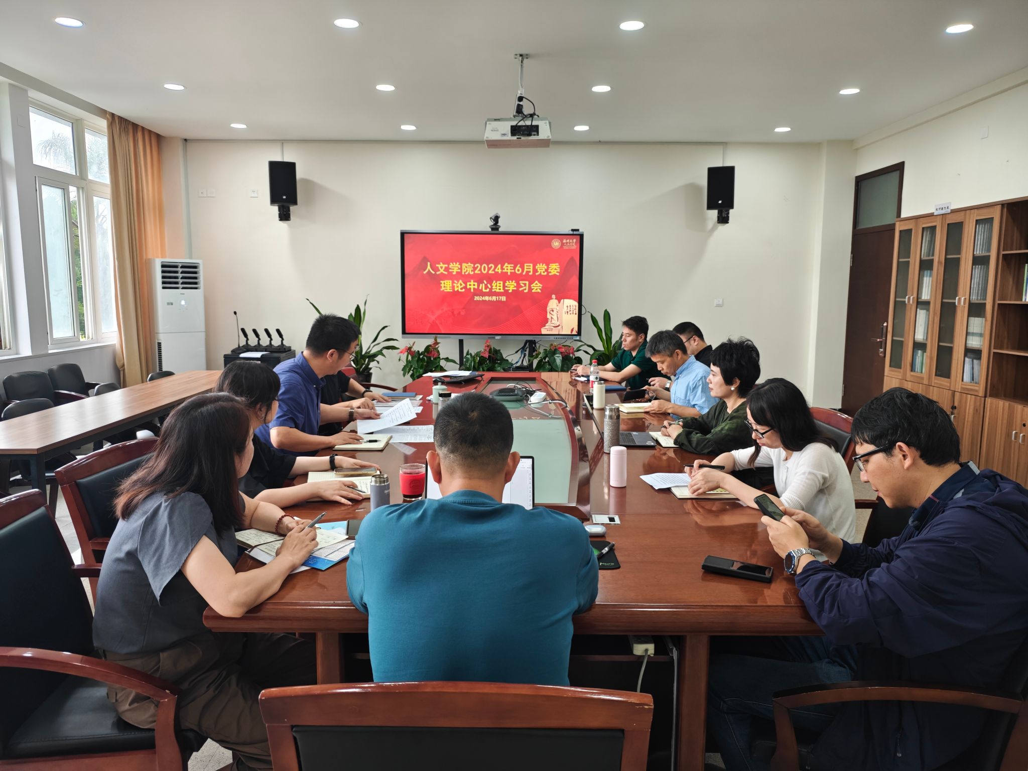 6月17日上午,学院党委理论学习中心组召开2024年第5次学习会。学院领导,党委委员,各系室(中心)党政负责人参加会议,院党委书记江秀景主持会议。