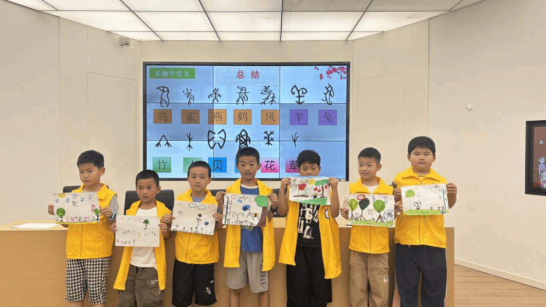 甲骨文是迄今为止中国发现的年代最早的成熟文字系统,上承原始刻绘符号,下启青铜铭文,被称为“最早的汉字”。为更好地推广普通话,老师在课堂上开展了甲骨文创意绘画活动。小朋友们十分兴奋,纷纷拿出纸笔,跟着队员们的引导,一笔一划地绘制着属于自己的甲骨文作品。甲骨文刻写整齐、笔画均匀、字形美观,取法于天地、日月、山水、草木及鸟兽虫鱼,生动而直观地反映了自然美。甲骨文创意绘画活动,不仅提高了小朋友们的绘画能力,而且大大激发他们在生活中运用普通话的兴趣。