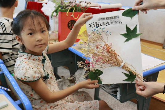 诗意盎然绘风月,横竖撇捺摹苍穹。队员们对汉字结构的讲解让孩子们领略了汉字的无限魅力,队员们以古代庄重典雅的建筑为喻,深入浅出地讲解了汉字结构的均衡之美与对称之美。孩子们在惊叹于汉字之美的同时,也纷纷拿起笔,以最端正的字体抄写自己创作的拼贴诗。一笔一划间,不仅是对汉字书写的练习,更是对传统文化的传承与致敬。