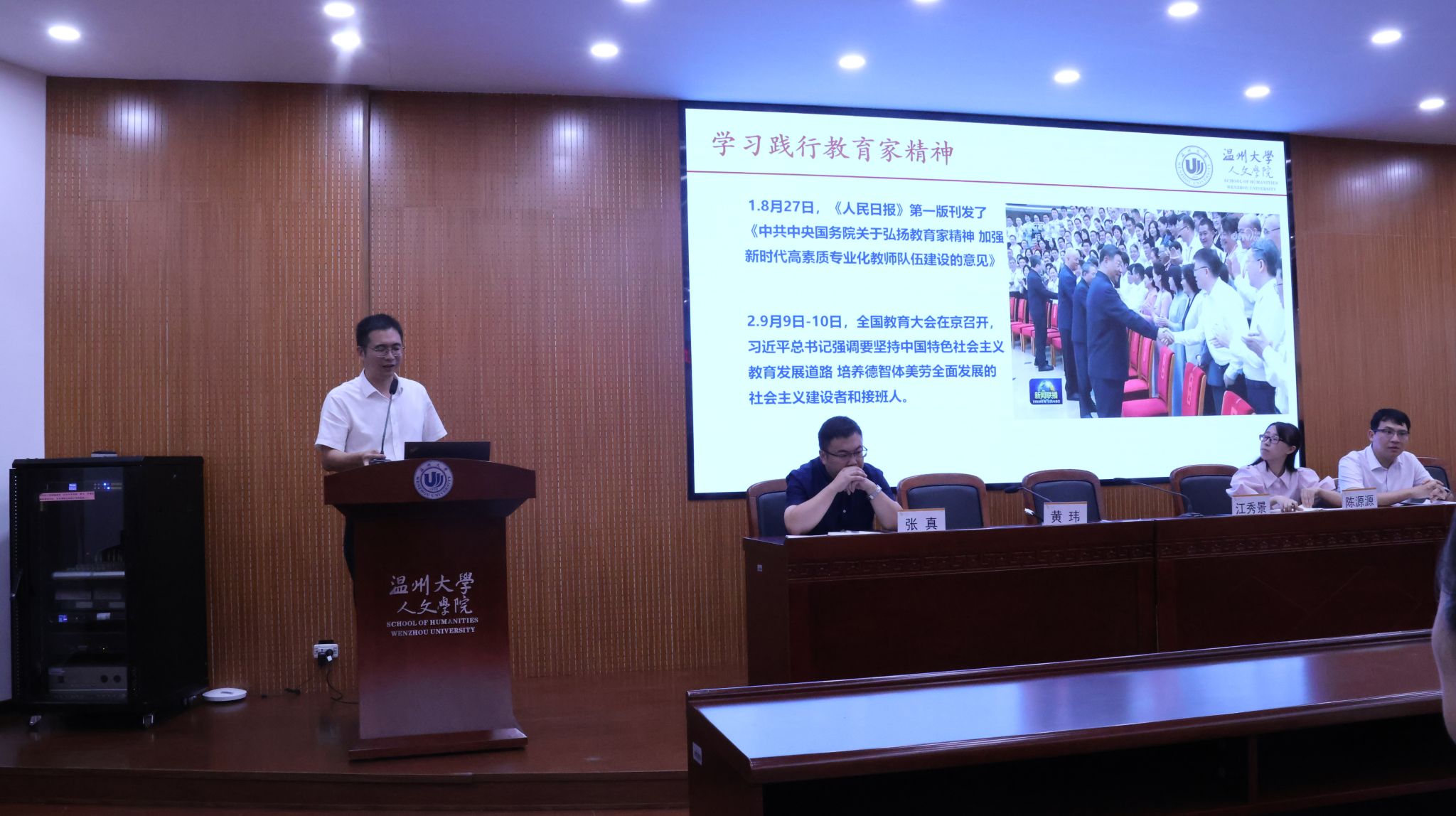 2024年9月11日下午,bat365在线中国官网登录入口召开教职工大会暨弘扬教育家精神学习会。学院领导班子,全体教职工参加会议。会议由院党委书记江秀景同志主持。