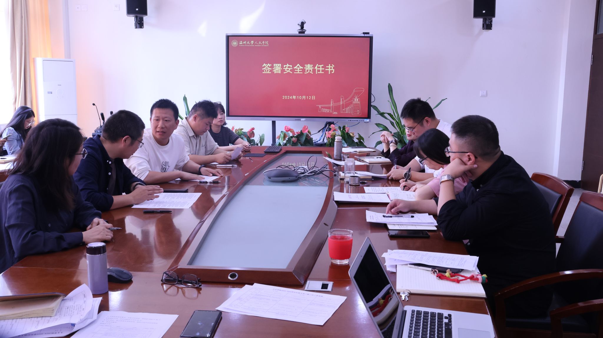 在紧接着召开的争创“5A平安校园”工作部署会上,马声威主任首先传达了学校争创“5A平安校园”的必要性和坚定决心。平安校园建设是学校工作的重要组成部分,关系到师生的生命安全和校园的和谐稳定。会上,江秀景书记要求各科室对标对表,明确各自任务,做好各项材料整理。各科长、实验室主任与院领导共同签订了争创“5A平安校园”责任书。这份责任书不仅是一份承诺,更是一份责任与担当。各科室和实验室将严格按照责任书的要求,认真履行安全管理职责,确保各项安全措施落到实处。
