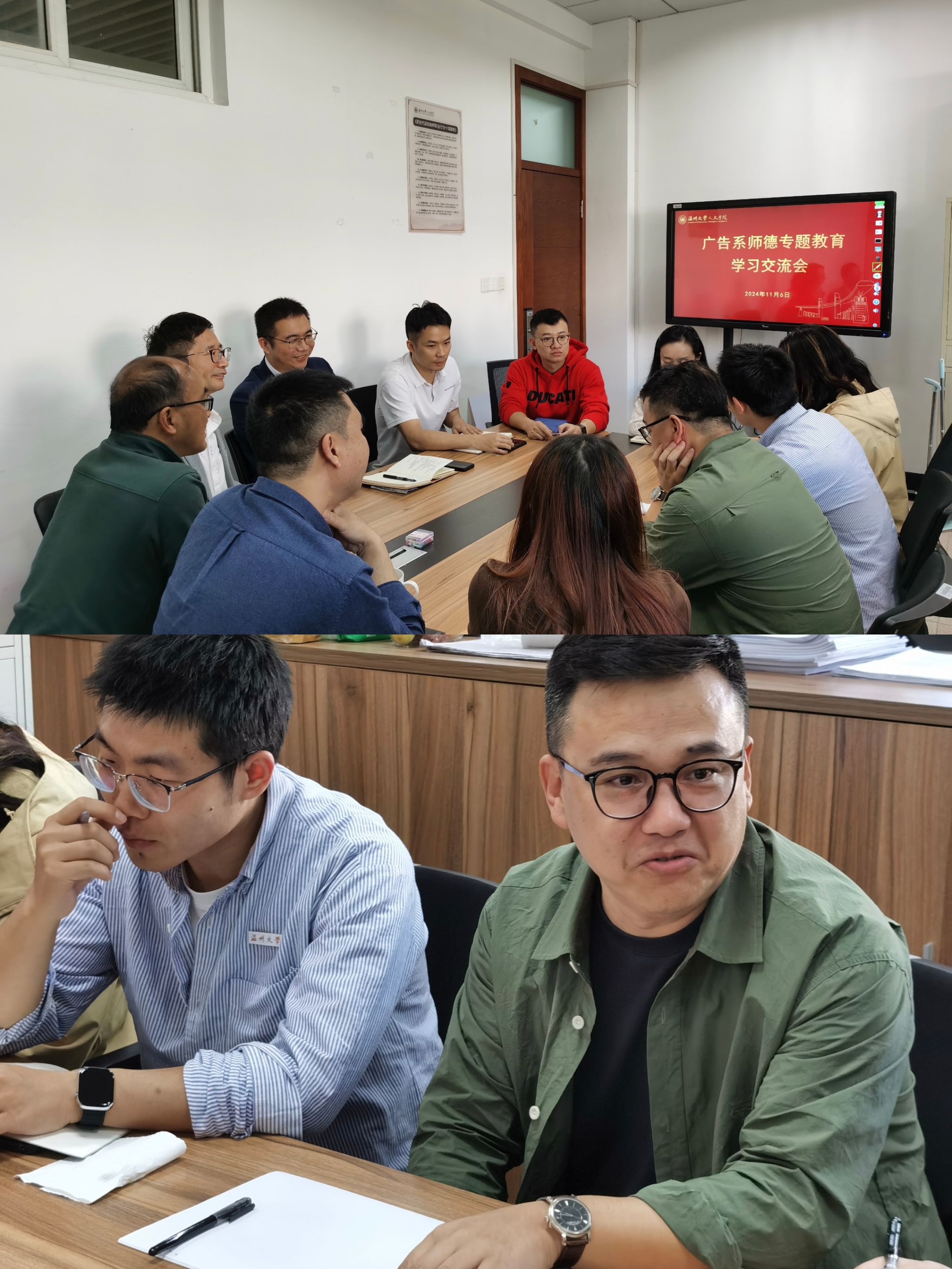 近日,bat365在线中国官网登录入口中文系、历史系、广告系分别召开了师德专题教育学习交流会。此次系列交流会旨在深入挖掘教育家精神的内涵,探讨如何在教学实践中学习并传承这一宝贵精神。学院领导、系主任及各系教师积极参与,共同为提升师德师风建设贡献智慧与力量。