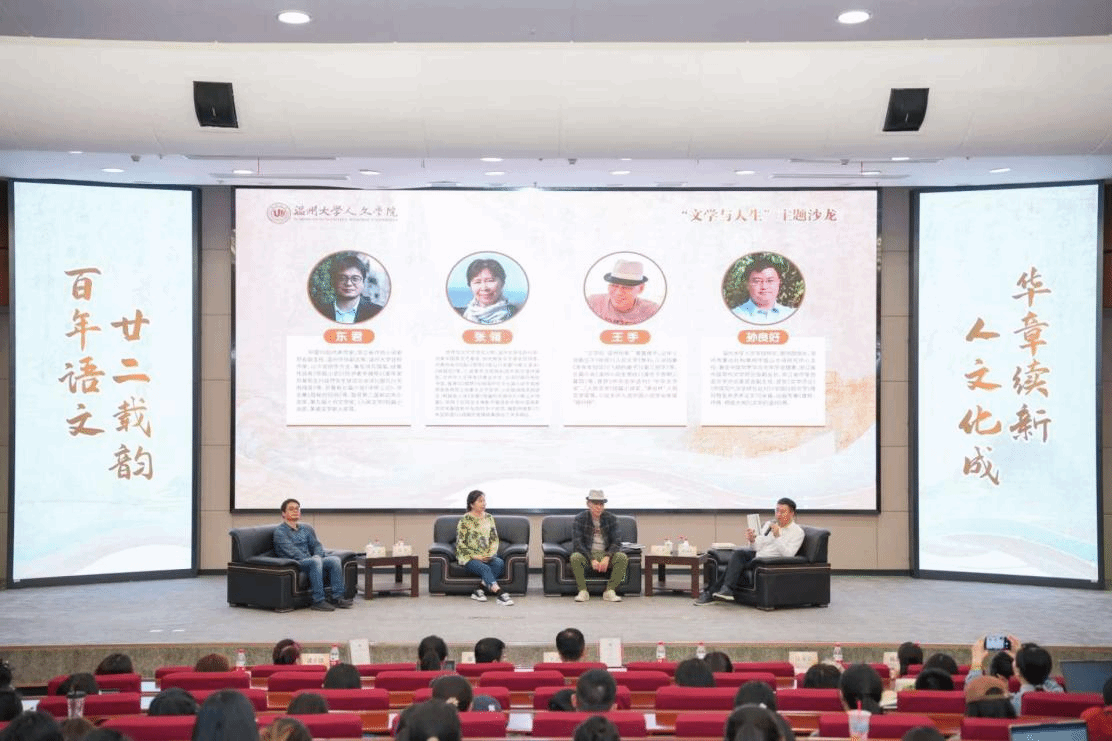 仪式结束后,进入“文学与人生”主题沙龙活动环节。由bat365在线中国官网登录入口院长、图书馆馆长孙良好主持主题沙龙,与温籍作家张翎、王手、东君三位嘉宾对谈。
