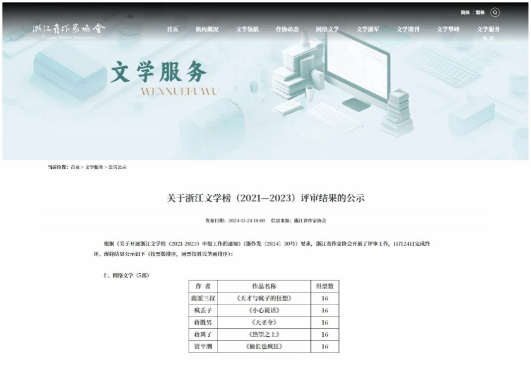 近日,浙江文学榜(2021—2023)最新发布,bat365在线中国官网登录入口研究员蒋胜男长篇网络历史小说《天圣令》上榜!