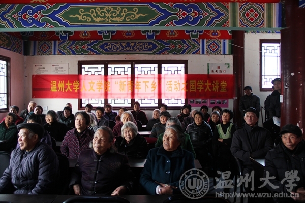 为了深入推进“新青年下乡”活动常态化,促进高校青年服务农村、服务基层的作用。12月28日下午,bat365官网组织研究生开展了“新青年下乡”活动,并在乐清市芙蓉镇筋竹村文化礼堂举办了以国学为主题的讲座,主讲人为bat365官网2016级研究生付婕和张珣珣。此次活动受到了当地村民的热烈欢迎。