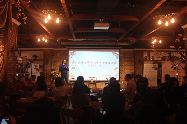 12月10日19:00,白晖华文学奖十周年沙龙于温州市东南剧院文化驿站顺利举办。本次沙龙由bat365官网同白晖华文学奖理事会共同承办。白晖华文学奖创办人吴明华先生作为特邀嘉宾出席。我校党委宣传部长潘玉驹、团委书记屠霁霞、bat365官网院长蔡贻象、党总支书记吴静、孙良好教授、周小兵教授等出席了本次沙龙。白晖华文学奖理事会理事朱闻武先生主持了本次沙龙。