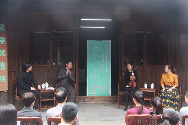 在池浚教授的整个讲演过程中,池方华先生适时地与池教授进行交流,并穿插着由腾腾和龚弦女士的生动的昆曲、南戏表演及小提琴演奏。一中一西的两种表演方式,邂逅于朱自清故居,也为两个剧目作了中国戏曲与西方弦乐上的生动注解。沙龙接近尾声时,在场的听众也向台上的池浚教授、由腾腾女士等嘉宾进行了提问,艺术的氛围在提问与答疑中得到了进一步升华。从爱情的追寻到自由的追寻,从一个女子的悲剧到整个社会的悲剧,池教授的主题讲演包罗古今中西,由浅入深,过程中多种艺术形式的碰撞,也为观众带来了一场别开生面的视听盛宴。