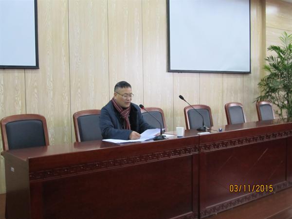 蔡院长首先对蔡袁强校长在学期初全校教职工大会上的工作报告进行了深入解读,对学校今年重点推出的岗位聘任制改革、教职工收入分配补充办法等重大事项进行了通报。蔡院长回顾了学院2014年的工作成绩,他指出学院荣获bat365在线中国官网登录入口教学工作考核和学科科研考核优胜单位是每位教职员工辛勤付出和无私奉献所取得,希望今后再接再厉,争取更大成绩。接着蔡院长结合学院目前实际情况,提出学院今年要进一步提高人才培养质量,切实做好新一轮岗位聘任工作,大力推进本科教学改革,并就创办创意中文实验班重点工作进行了规划和部署。