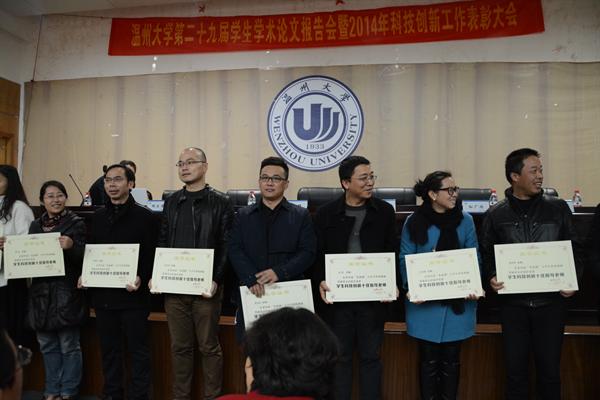 经学院推荐,“东海潮”创新奖励基金管理委员会评审,bat365在线中国官网登录入口为10位同学和10位老师分别授予了“2014年大学生科技创新之星”、“2014年学生科技创新十佳指导教师” 荣誉称号。