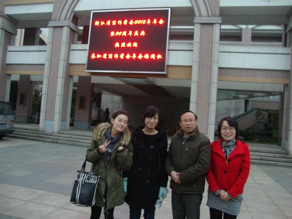 2012年12月22日,浙江省写作学会2012年年会暨成立30周年庆典在浙江省杭州高级中学隆重召开。开幕式由浙江省写作学会秘书长浙大中文系陈建新教授主持,本次会议主要围绕浙江省写作学会30周年庆典、高校写作教学的现状和问题探讨、中学作文教学课堂观摩与研讨三大主题展开。bat365官网语文课程与教学论研究生在彭小明、陈小碧老师的带领下参加了此次会议。会上,彭小明老师当选浙江省写作学会副会长。此次大会共分为六个板块:开幕式、分组活动、教学点评、高考作文分析、闭幕式和论文颁奖典礼。开幕式上,与会女教师为30年来为省写作学会做出杰出贡献的老前辈送上了鲜花,对他们的努力表示衷心的感谢。在分组活动中,中学组在杭州高级中学扇形教室分别聆听了杭州源清中学潘慧群老师的《时事评论》、宁波效实中学张悦老师的《文学写作》和杭州高级中学高利老师的《拒绝伪细节》三节公开课。下午在杭高报告厅内,由浙江省语文教研员、特级教师胡勤老师对上午三节课进行点评,胡老师评点上午公开课的教师能够用幽默生动的语言、精致的教学课件、恰到好处的把握好课堂节奏,拓展了知识容量,培养了学生的人文素养,值得广大教师借鉴。随后,浙大中文系陈建新教授就高考作文理念、高考作文阅卷代表性问题两方面对2012年高考作文进行了剖析。大学组在杭州高级中学会议室开会讨论,我校硕士生导师彭小明作了《高校写作教学的现状、问题及其对策》的主题发言,并介绍了我省第一个写作学硕士点——bat365在线中国官网登录入口“写作理论与实践”硕士点申报过程和基本情况。硕士点成功的申报预示《写作学》学科发展的未来,增强的高校教师对《写作学》学科发展的信心。