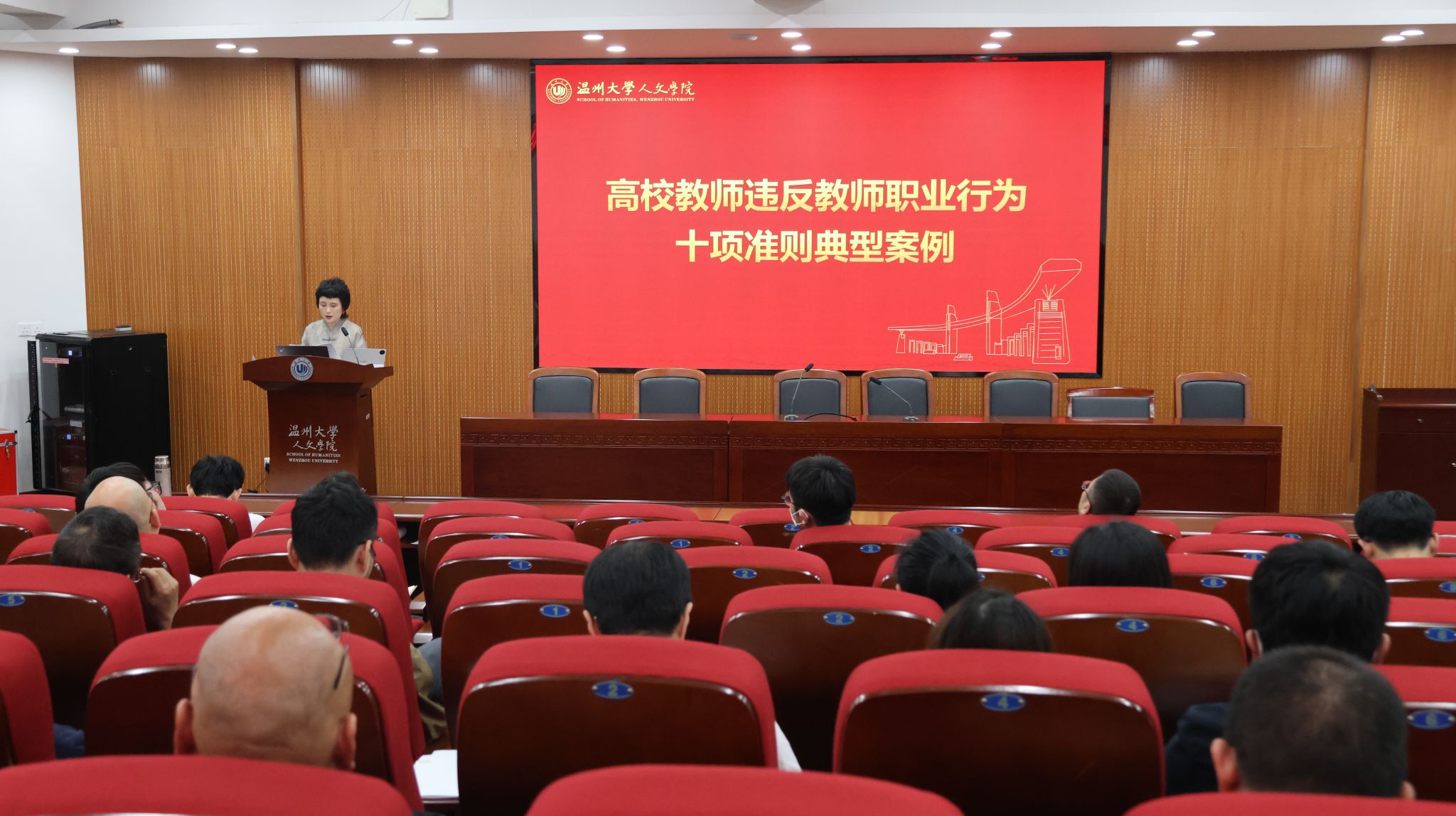 最后,为进一步深入贯彻中央八项规定精神、加强师德师风建设,会议通报了近年来教育部公开曝光的违反教师职业行为十项准则的典型案例,涵盖学术不端、收受礼品礼金等失范行为,引导全体与会人员以案为鉴、警钟长鸣,切实做到知敬畏、存戒惧、守底线。