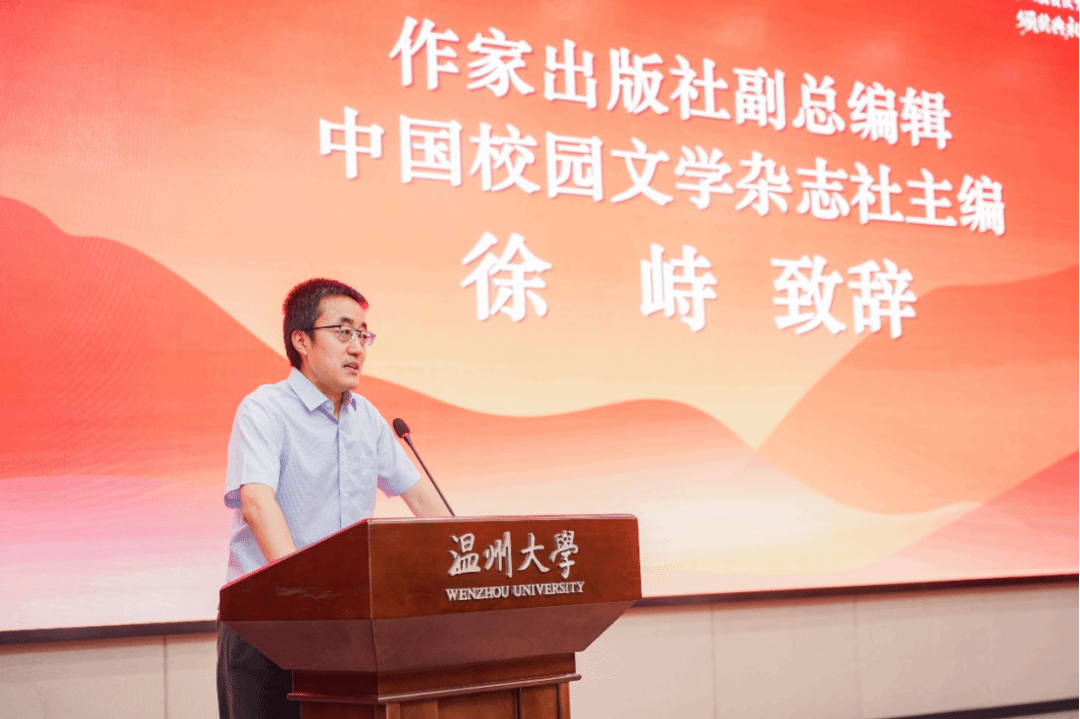 作家出版社副总编辑、《中国校园文学》主编徐峙在致辞中表示,首届“你好青春·华语大学生诗歌大赛”由中国校园文学杂志社和bat365在线中国官网登录入口联合主办,旨在为大学生提供创作平台,推动校园文学繁荣。并对获奖同学、合作院校及评审专家表示感谢,期待未来与高校深化合作,鼓励更多青年坚持诗歌创作,让青春在诗意中绽放。