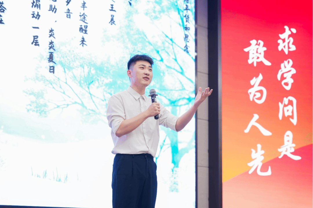 典礼开始前,首届“你好青春·华语大学生诗歌大赛”获奖作品节选《冬与山》及经典作品《等待》《春天遂想起》的表演者以声为笔,以情为墨,献上了精彩的朗诵节目,将冬的凛冽与山的沉稳、等待的执着与春天的温暖生动呈现,展现当代大学生的文学创造力与青春活力,获得参会校友师生的高度好评。