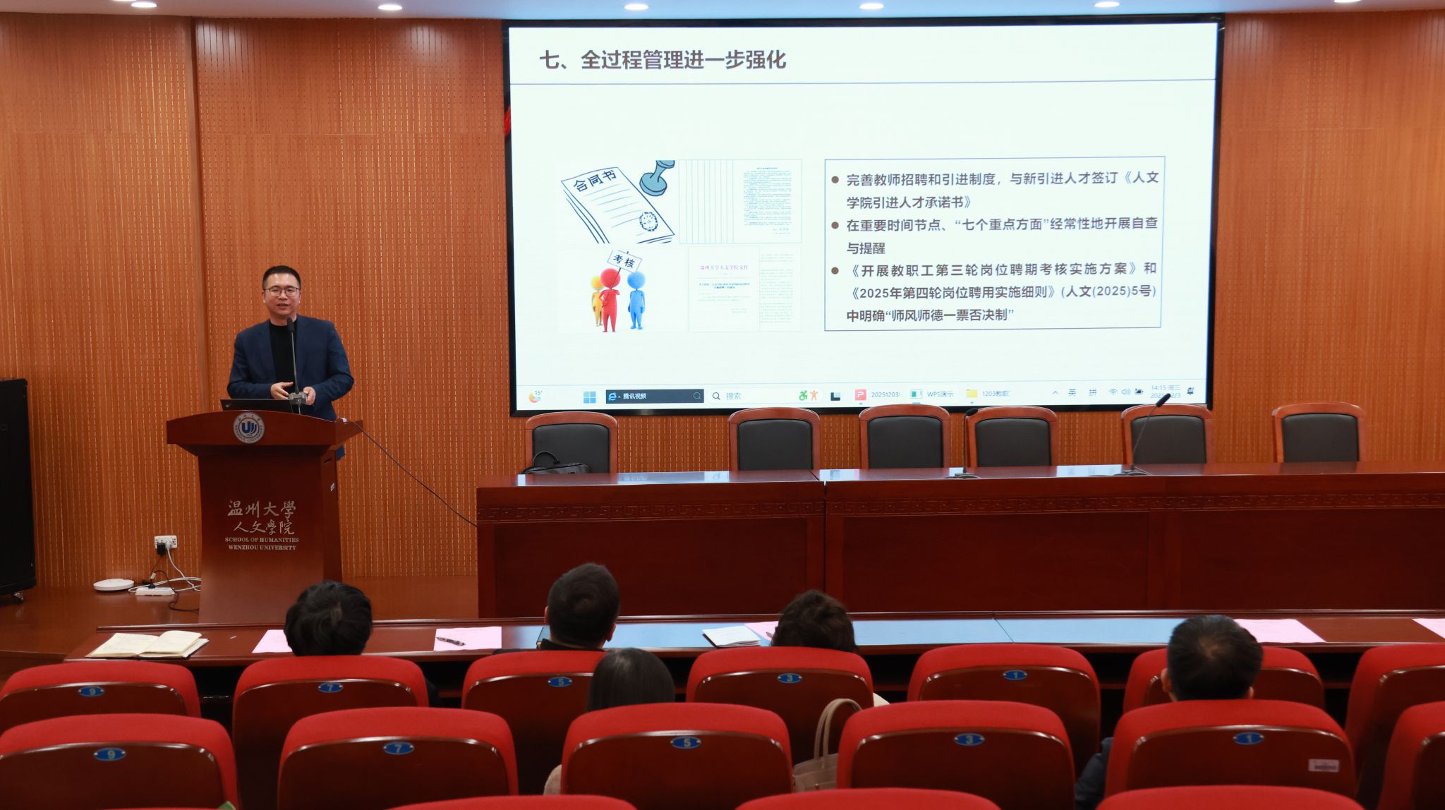 最后,会议召开师德师风建设专题学习会。张真副院长作财经纪律专题解读;黄玮副书记通报师德师风负面案例;江秀景书记分别从组织领导、机制建设、宣传教育、过程管理等10个方面,全面介绍和回顾了学院师德师风建设的相关情况,强调全体教师务必提高思想认识,做到警钟长鸣、慎独慎行,共同营造和谐稳定氛围。