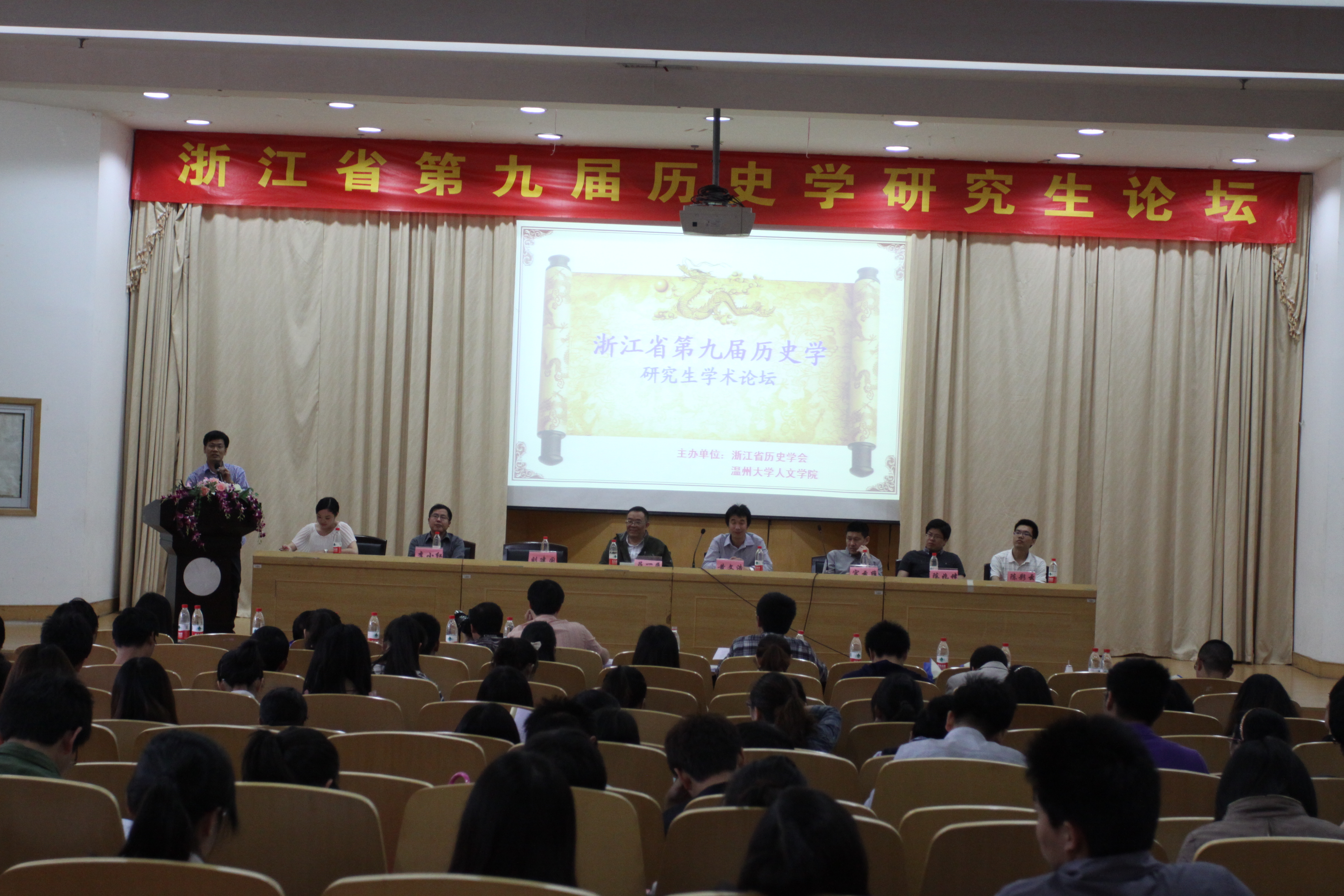 2012年5月5日上午,由浙江省历史学会和bat365在线中国官网登录入口联合举办的,为期两天的浙江省第九届历史学研究生学术论坛在我校会展中心雁山厅开幕。来自浙江大学、浙江师范大学、杭州师范大学、宁波大学、浙江工商大学和bat365在线中国官网登录入口省内六所高校的近百位历史学师生齐聚本次论坛。