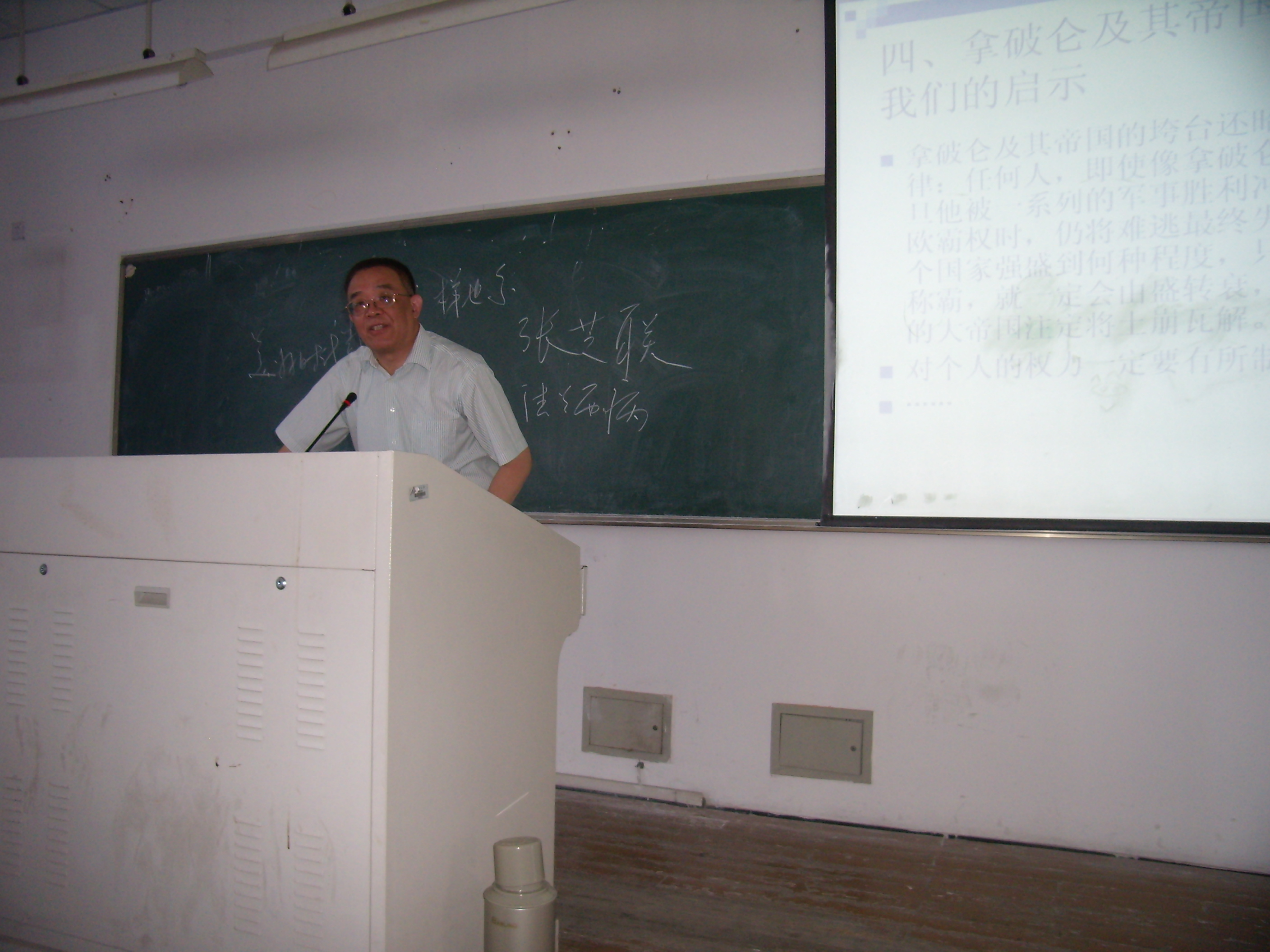 5月7日上午8时,bat365在线中国官网登录入口301大教室早已挤满了人,等待聆听浙江大学bat365在线中国官网登录入口副院长、历史系博士生导师吕一民教授的讲座《拿破仑的崛起与法兰西第一帝国的兴衰漫谈》。吕教授在法国史研究方面有很高的造诣,曾出版过《大国通史-法国通史》、《一九一八--一九三九年的法国》、《世界著名首相传》、《世界著名记者传》、《法兰西的兴衰》、《20世纪法国知识分子的历程》等专著。此外还翻译了《知识分子的鸦片》、《卡尔•波普》、《自由之声--19世纪法国公共知识界大观》、《公民的加冕礼:法国普选史 》、《海德格尔》、《耶稣会士中国书简集:中国回忆录》等书籍。郑春生、蔡瑞霞、陈勇等老师也聆听了讲座。