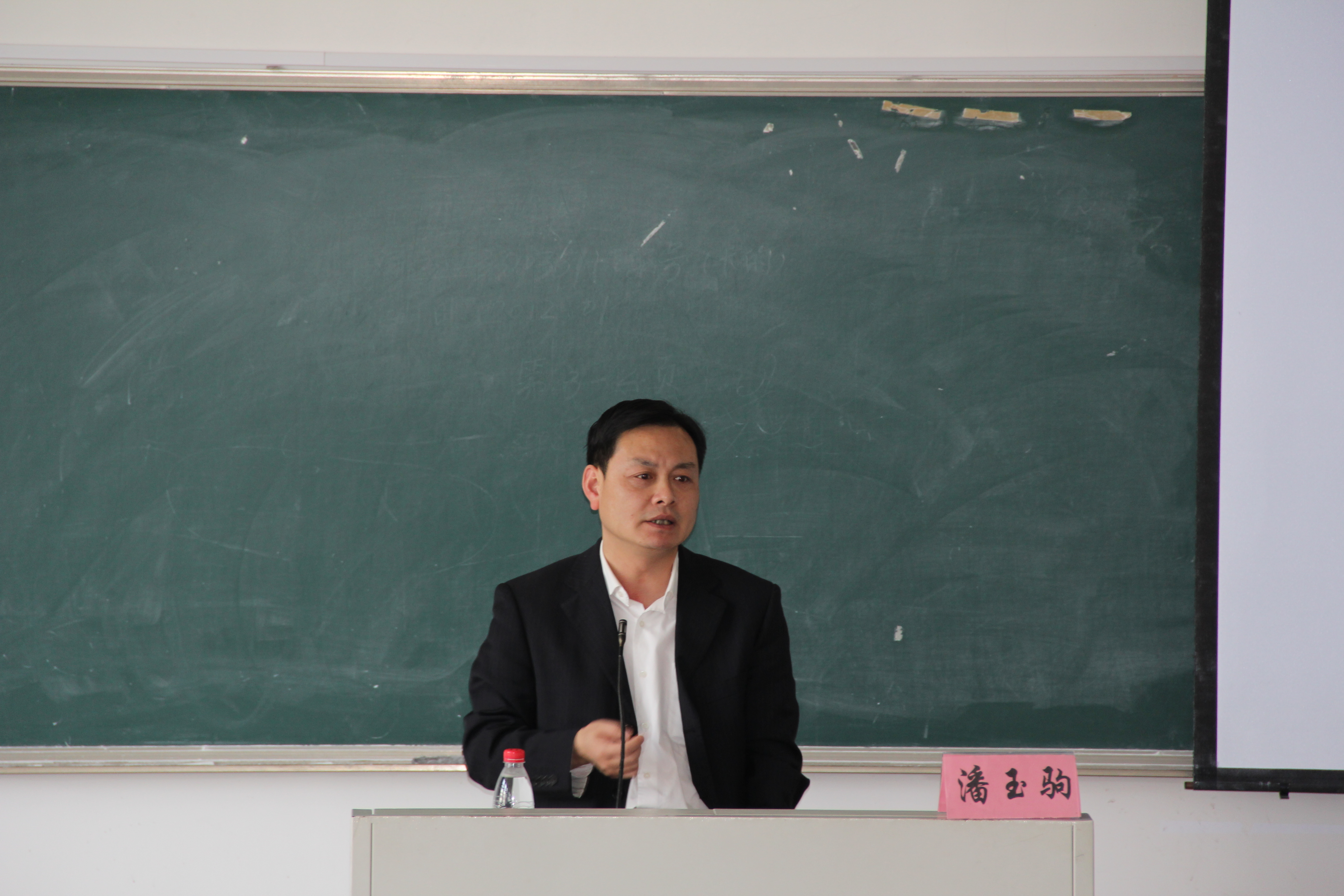 2012年3月28日14时,bat365在线中国官网登录入口校党委宣传部部长潘玉驹部长在北校人文楼302教室做专题讲座。带领学员深度剖析国家形势和学校形势。