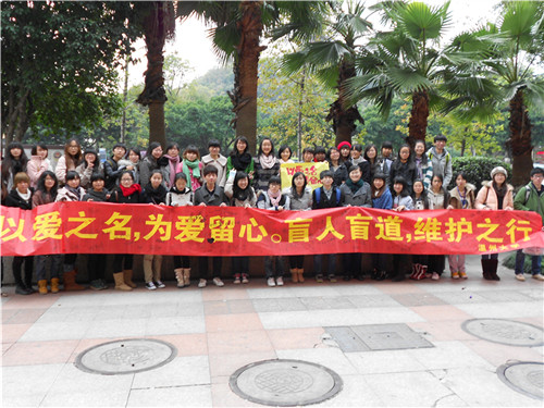 12月11日星期日。bat365在线中国官网登录入口10中本一班与美术学院10服装本两个班级按照原定计划,来到了之前选定的活动地点,开展了这次"以爱之名,为爱留心"的盲道现状调查及维护团日活动。