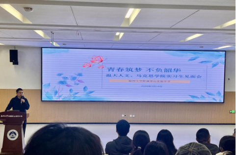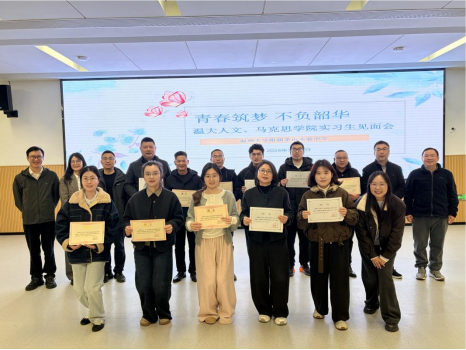 此次实习见面会,跟马克思学院共同举行,马克思学院实习生十人,领导孙邦金副院长、吴冬冬副书记,以及詹良水主任一道与会。孙邦金副院长、实习生代表刘婕同学也做了发言。