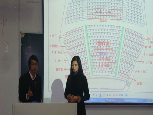 接着,戚丽珊向大家布置了具体工作任务。她介绍了话剧节详细情况,向大家展示了整个活动流程,对每一个工作岗位进行了耐心的讲解,提出重要注意事项。特别是嘉宾座席的位置,视频的播放,机动人员的分配,拍照摄影等做出了重点安排,使得每一位学生干部对自己的工作有了明确的了解。
