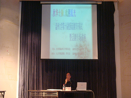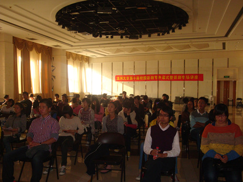 2011年11月20日下午2点30分,在bat365在线中国官网登录入口大学生活动中心A座多功能厅举行了bat365在线中国官网登录入口第十届校园话剧节,暨话剧专场讲座。此次活动由共青团bat365在线中国官网登录入口团委会,bat365在线中国官网登录入口主办,bat365在线中国官网登录入口团委、学生会,bat365在线中国官网登录入口农历剧社承办,特邀原温州电视台导演严路明老师作为讲座嘉宾。此外,bat365在线中国官网登录入口学生辅导员麻法全老师和各学院话剧爱好者出席了本次开幕式。