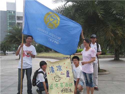 不知不觉,春天已远去,炎热的夏日在等待着我们。当酷热渐渐靠近,让我们来凉爽一下,6月8号的下午,09历本的志愿者打算为所有辛苦学习的广大同学们送去凉茶,让他们感受到大家的关心,能够更加激情地学习与生活。在校园中传播我们的爱心,让我们手拉手,心连心,夏日里来绽放着恬静的笑颜。
