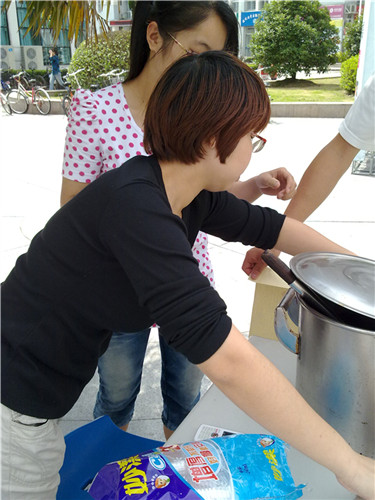 当天下午,志愿者买了煮凉茶的材料,与C区食堂联络之后,由食堂煮好之后拿到C区盛放在杯子里提供给大家。在整个活动过程中,许多同学都非常开心,对活动表示非常的支持。把凉爽送给身边所有的朋友,即使是在炎热的夏季,也能从外到内地感受到凉快而舒适的感觉。