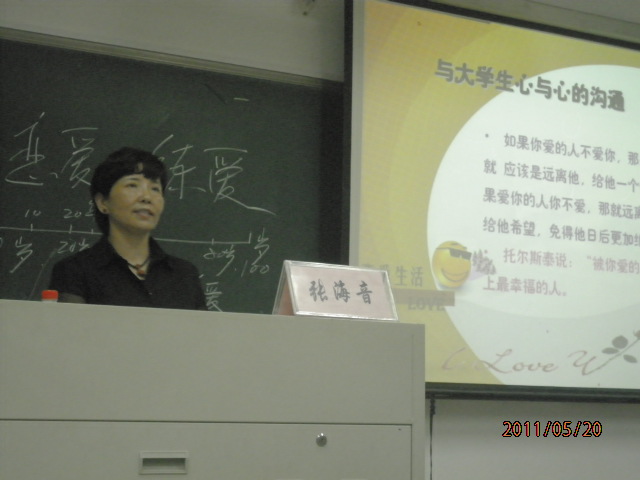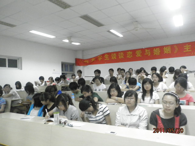 5月20日晚6点半“与大学生谈谈恋爱与婚姻”心理健康专题讲座在bat365在线中国官网登录入口202教室准时举行,主讲人为bat365在线中国官网登录入口心理健康教育中心负责人张海音老师,同学们积极参加,接受这份“关于爱情的嘱托”。