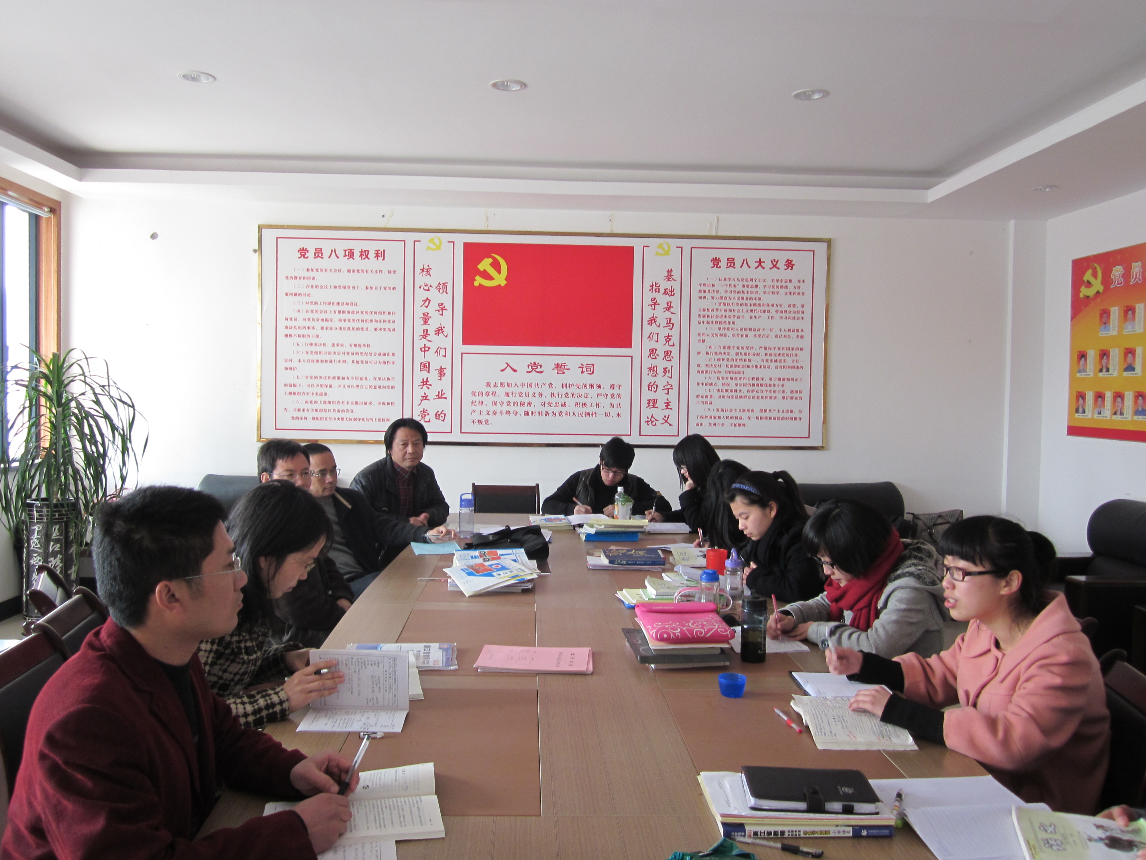 2011年3月24日下午,bat365在线中国官网登录入口周剑平书记和骆锤炼副书记赴教育实习基地--乐清国际外国语学校,看望正在实习的07中文本二班十四位同学,并安排听课和检查教育实习情况。在课后的两校座谈会上乐清国际外国语学校朱校长首先对bat365官网一行人员的到来表示热烈欢迎。随后朱校长对乐清国际外国语学校办学规模,发展思路,未来规划做简略介绍,并对bat365官网教育实习工作与实习学生整体素质给予高度的称赞,希望今后要继续深入开展两校全方位的交流与合作。