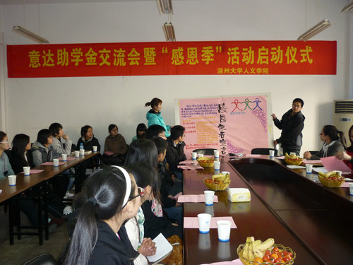 3月4日下午3点整,bat365在线中国官网登录入口意达助学金交流会暨“感恩季”活动启动仪式在人文楼311会议室正式展开。出席该会议的有来自意达进出口公司的王校长及相关组织人员,bat365在线中国官网登录入口党总支副书记骆锤炼老师、学生科副科长曾蓓蕾老师、辅导员叶豪芳老师与各受助学生也都参加了此次活动。